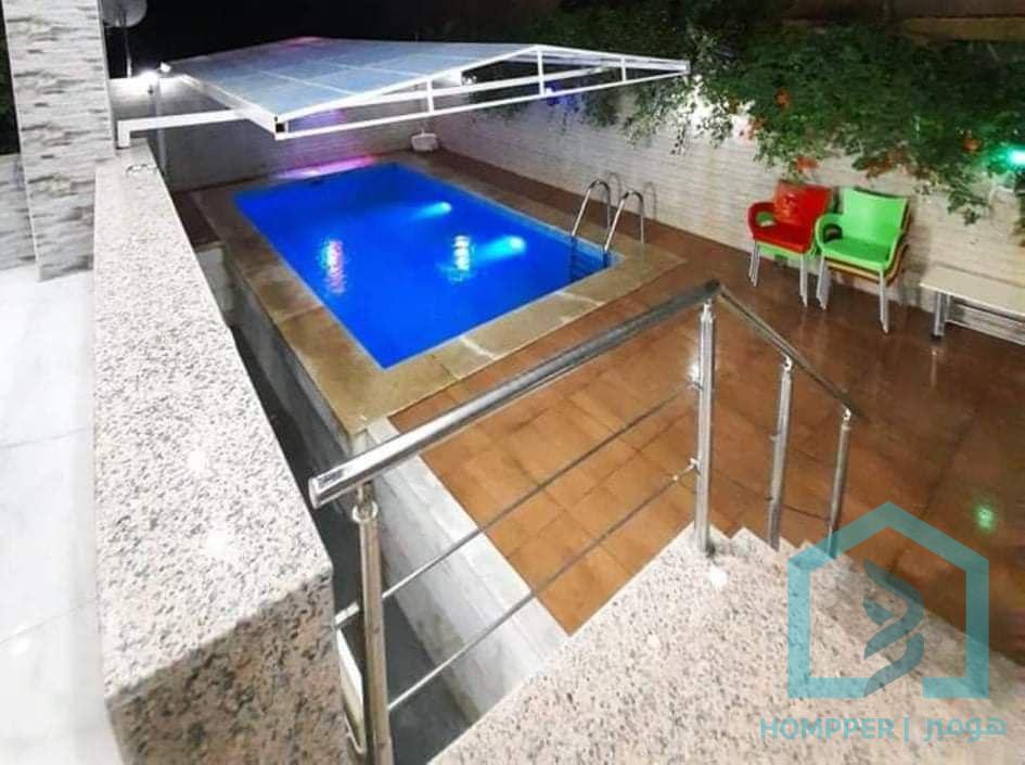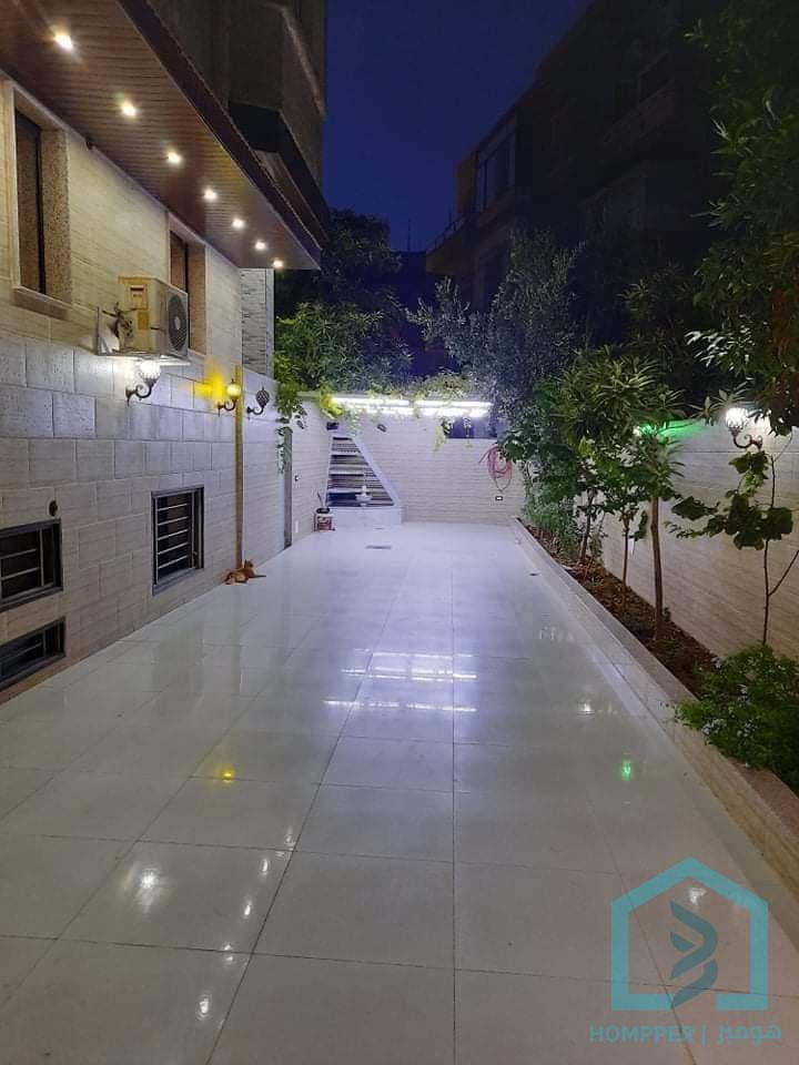 شقة روعة للبيع المنطقة أبو رمانة مقابل السفارة القطرية الملكية : طابو أخضر طابق : ارضي مع جنينة الاتجاهات : شرقي شمالي غربي المساحة : 180 بيت و320 متر حدائق بحدود ال500 الكسوة : سوبر ديلوكس الوصف الداخلي للبيت: `180 داخلي وجنينة مساحة320 م مقسمة لقسمين يوجد فيها مطبخ عدد2, حمام,مسبح,تراس,+كاميرات مراقبة.عدد2, مكيفات عدد5, أبجورات كهرباء +إنفلتر.