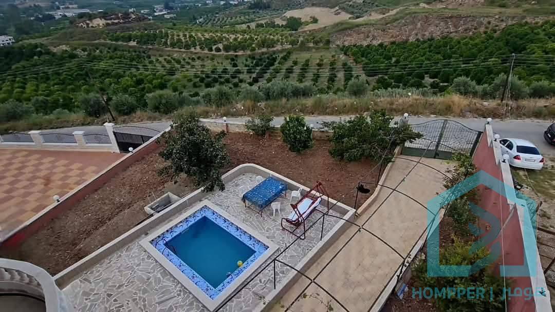 تبعد عن مدينة اللاذقيه مسافه 15 km موقع مميز على مرتفع واطلاله طبيعية رائعه المساحه الاجماليه للعقار 500 م المساحه الاجماليه للبناء 225 م الفيلا مجهزه بأنظمة كاميرات مراقبة مسبح مع غرفة فلتره حدائق تراسات باربكيو تنور باركنغ إكساء حجر خارجي سور يحيط بكامل الفيلا الطابق الاول بمساحة 125 م مؤلف من صالون مع غرفة جلوس وقسم السفره + مطبخ + حمام الطابق الثاني بمساحة 100 م مؤلف من صالون + ثلاث غرف نوم + حمام طابو نظامي 2400 سهم