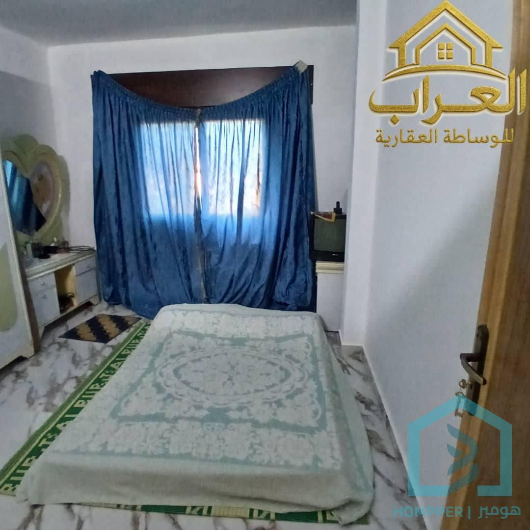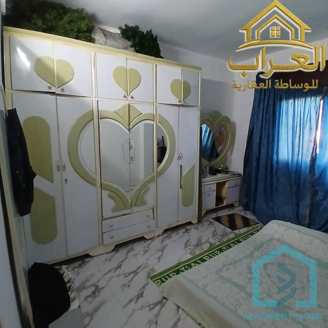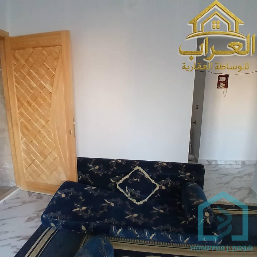 الشقة مؤلفة من غرفتين و صالون و مطبخ و حمام و برندى. الاكساء جيد (ينقصه خزن مطبخ فقط)