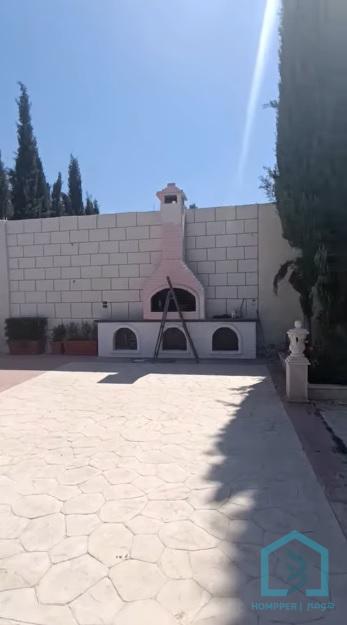 المساحة2250م(دونمين وربع) طابو اخضر البناء300م٢ طابق اول صالون +غرفة نوم +مطبخ أمريكي مفتوح طابق ثاني صالون +٤غرف نون+تراسين+حمامين مسبح جاهز /بير ماء /باربكيو جلسة باربكيو / كراج سيارات مشالح خاصة بالمسبح سكن خاص للحارس