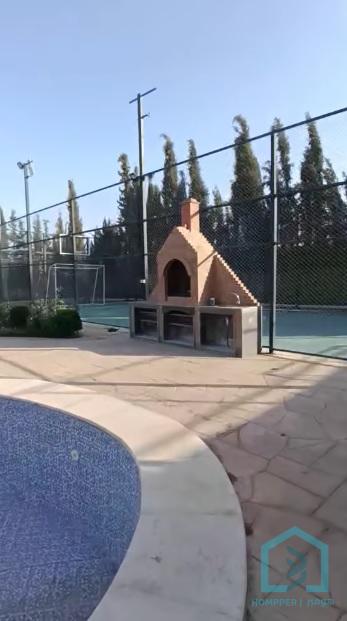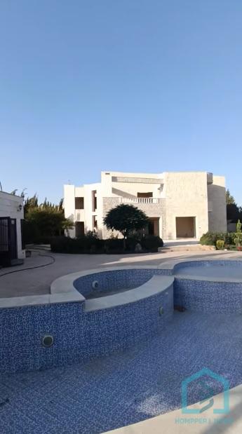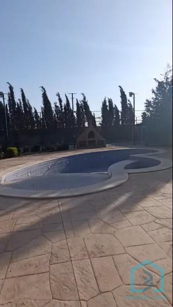 دوبليكس طابقين مع فتحة سماوية عظم ملبس حجر طبيعي بالكامل طابق ارضي صالون وغرفة نووم وحمام ط2 ثلاث غرف نوم +حمامين + تراس مضافة مستقلة مكسية عالمفتاح مسبح اوفر فلو 6×جاهز بير ماء غزير + سكن للحارس +باربكيو غرفة شوفاج مستقلة بالقبو غرفة كهرباء ملعب سداسي + العاب اطفال