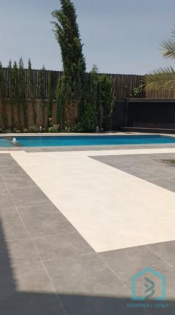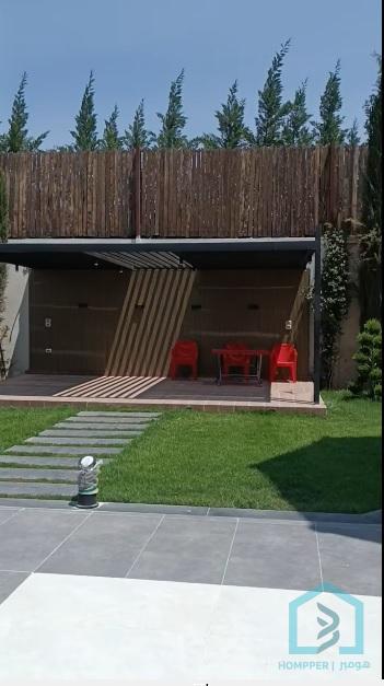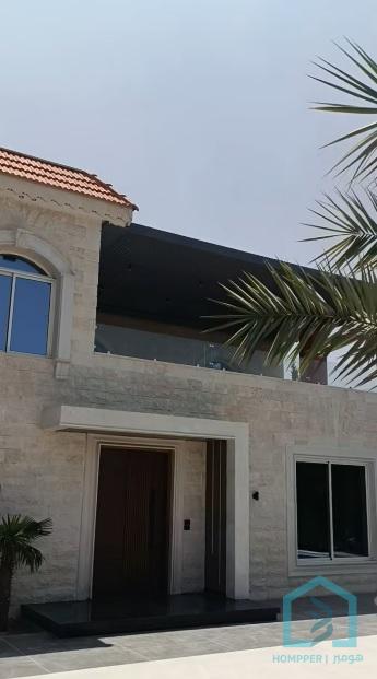 مودرن نظام حديث طابو أخضر البناء 320م٢ دوبليكس طابقين ملبس حجر طبيعي بالكامل ط1 صالون كبير + غرفتين نوم ماستر + مطبخ فخم ط2 غرفتين نوم ماستر + تراس موديرن جلسة مميز موديرن مسبح اوفر فلو 6×12م٢ + مشالح خاصة بالمسبح بير ماء غزير + سكن للحارس +باربكيو ممرات من الحجر الطبيعي أشجار زينة مع مساحة واسعة من المرج