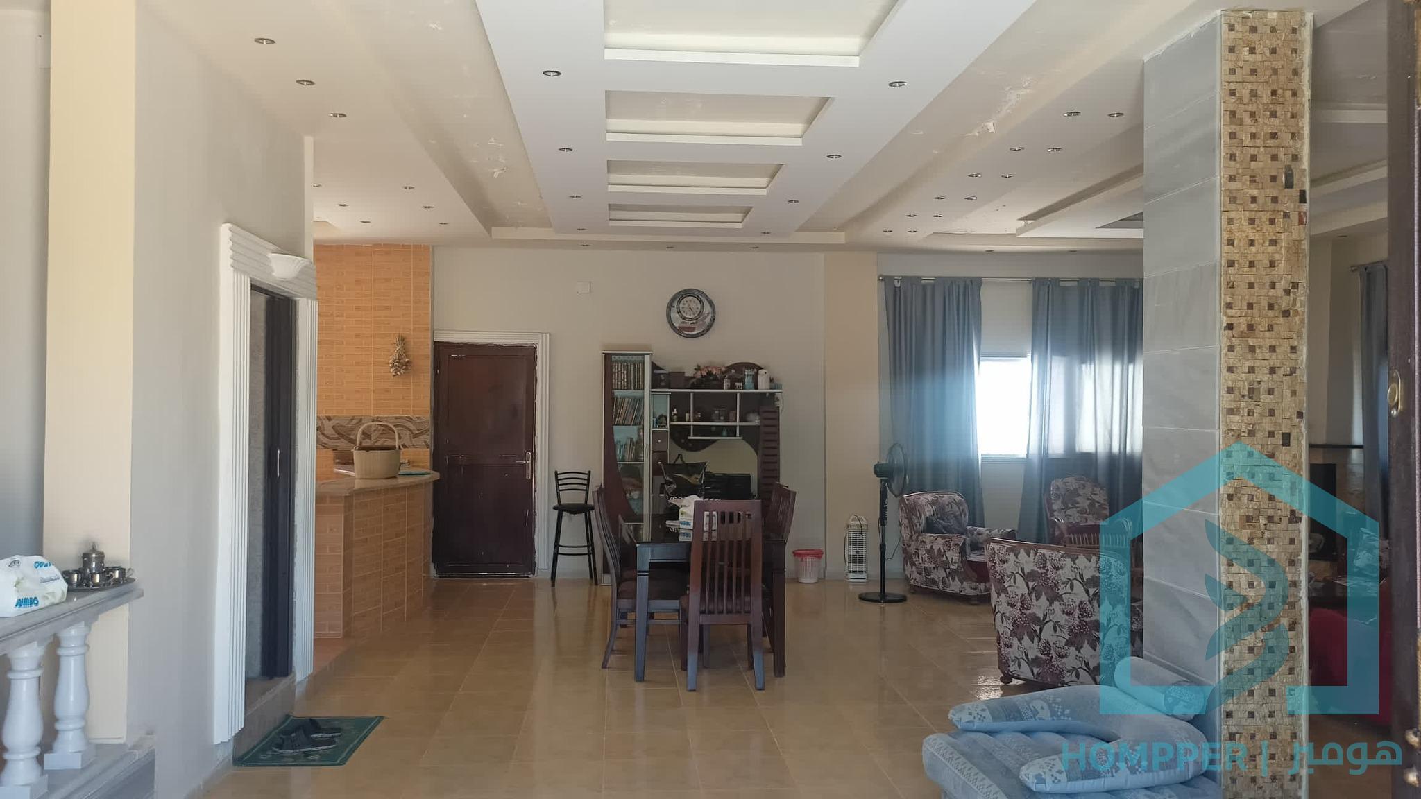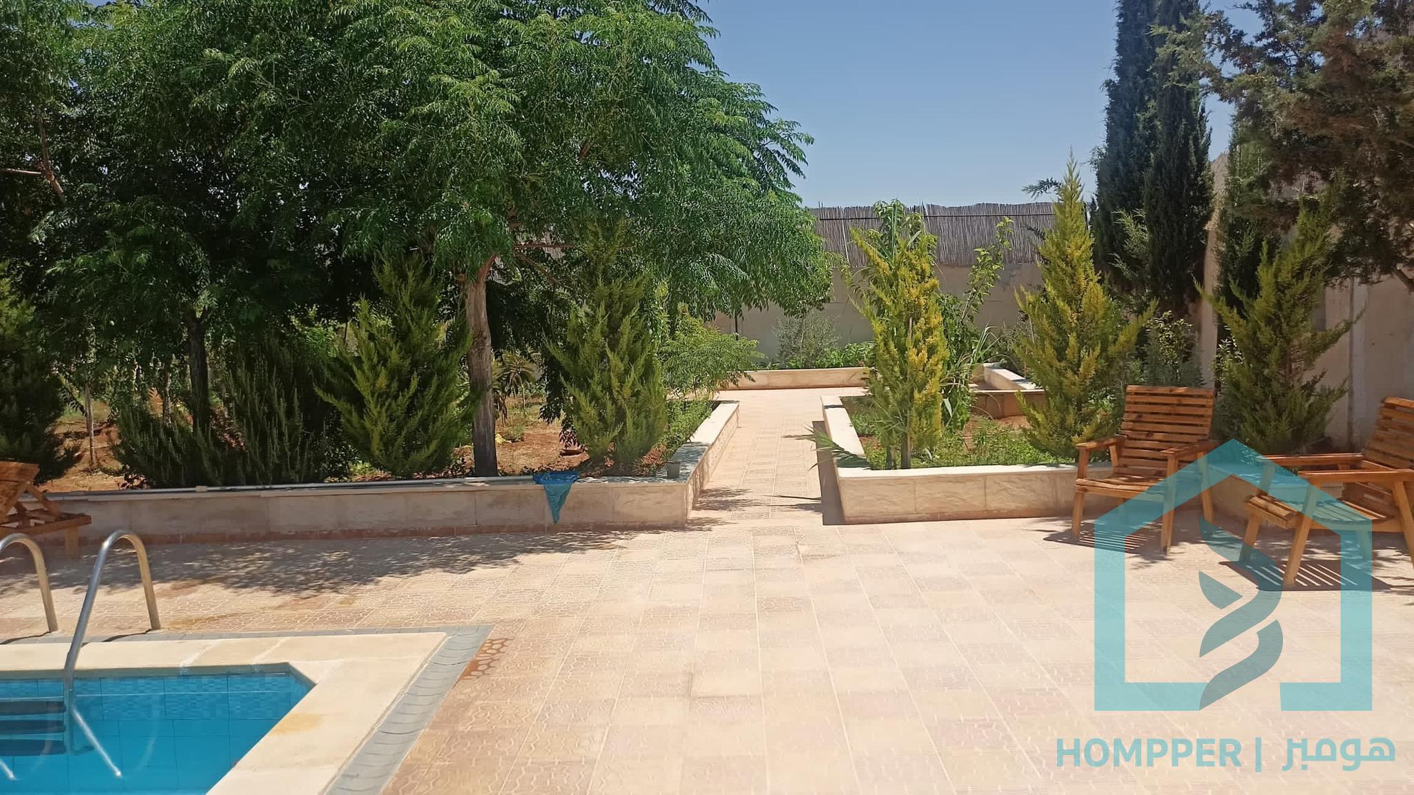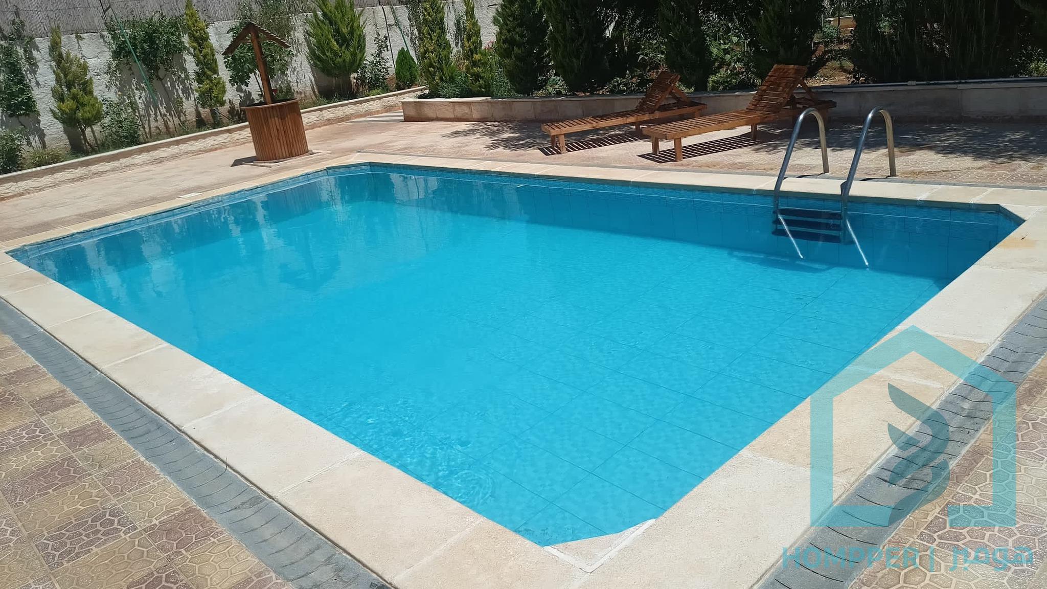 للبيع مزرعة في خان الشيح مساحة 1300 متر فيلا طابقين الطابق الأول مساحة 160 متر صالون كبير مع شمنيه و مطبخ امريكي و حمام الطابق الثاني غرفتين نوم و حمام و تراس مسبح و بابربيكيو و بستان مزروع شجر فواكه و بيرين مياه و طاقة شمسية كهرباء و طاقة شمسية مياه الملكية حكم محكمة