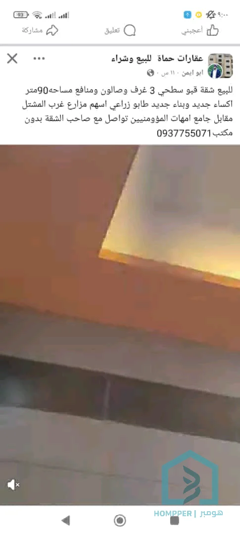 شقة ثلاث غرف وصالون مساحة 90م اكساء سوبر ديلوكس تنزلها 7 درجات مضوية مهوية كاملة على شارعين