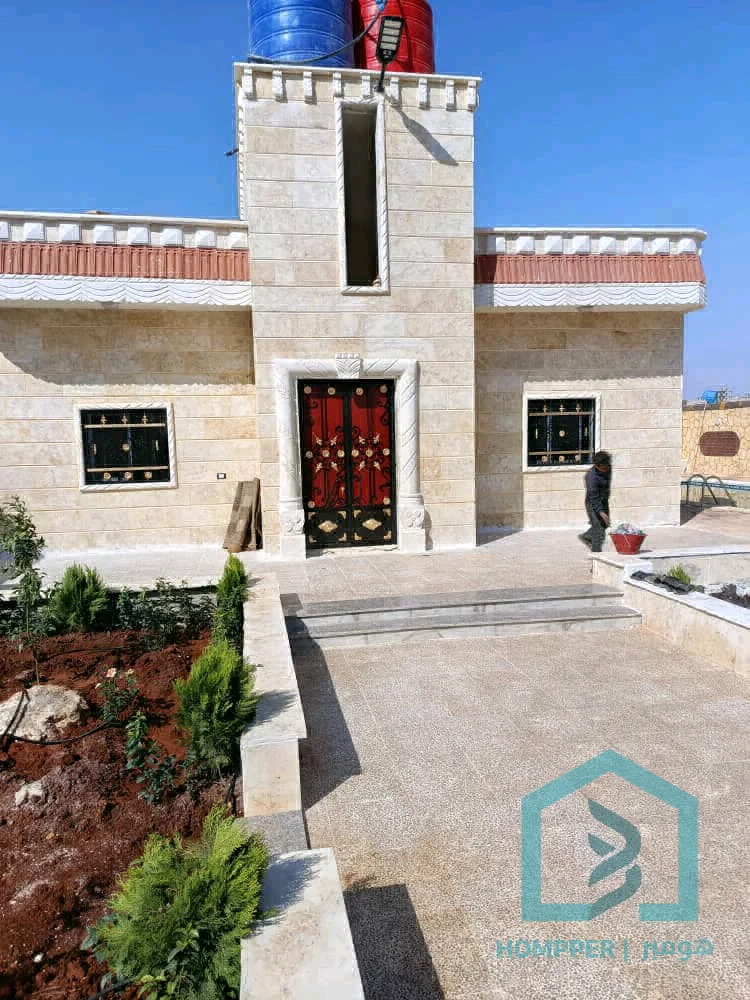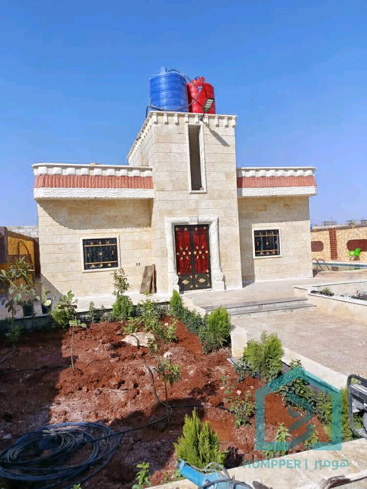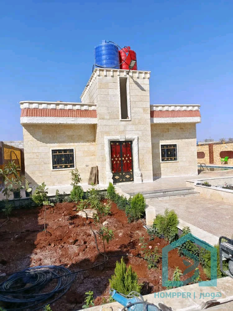 للبيع مزرعة جاهزة عبي غراضك وتعال اسكن المساحة الإجمالية ٦٥٠ متر مربع مساحة البناء ١٢٥ متر مربع العنوان كفرناها المسافة لحلب 15 دقيقة و12 كلم مميزات العقار الواح طاقة شمسية وخزانين ماء كل خزان ٢٠٠٠ لتر مع فلترة مسبح وبلاط أسطح مع بيت الدرج ما عليك به المزرعة الا تجيب غراض بيتك