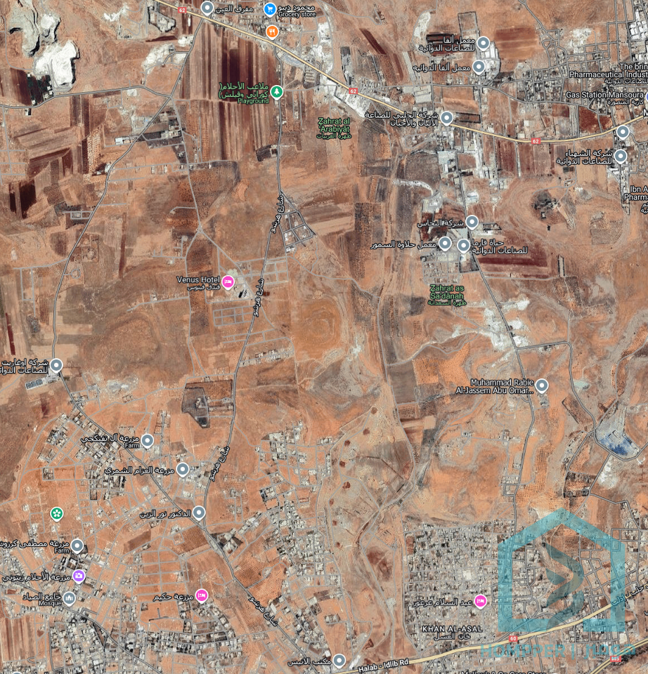 كود العرض 405M / للبيع ارض في خان العسل مفرق هرشو مساحة 3000 متر طابو أسهم السعر 55 دولار للمتر الواحد
