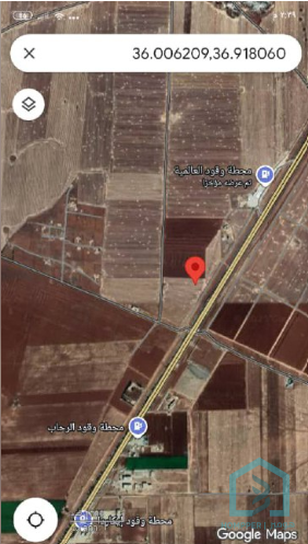 كود العرض EAS للبيع ارض مساحتها 8هكتارات تمام المحضر زاويه عل شارعين واجهه 220م العنوان طريق حلب الشام البوبيه جانب محطه وقود العالميه السعر90$