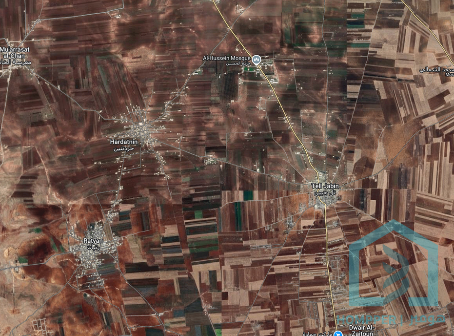 كود العرض EAS للبيع ارض مساحتها 5هكتار تمام المحضر واجهه 75 عل شارعين ترابي تتضمن ارض 7دولمات زيتون تبعد عن زفت 700م تبعد عن حلب مايقارب 18كيلو م السعر 3$