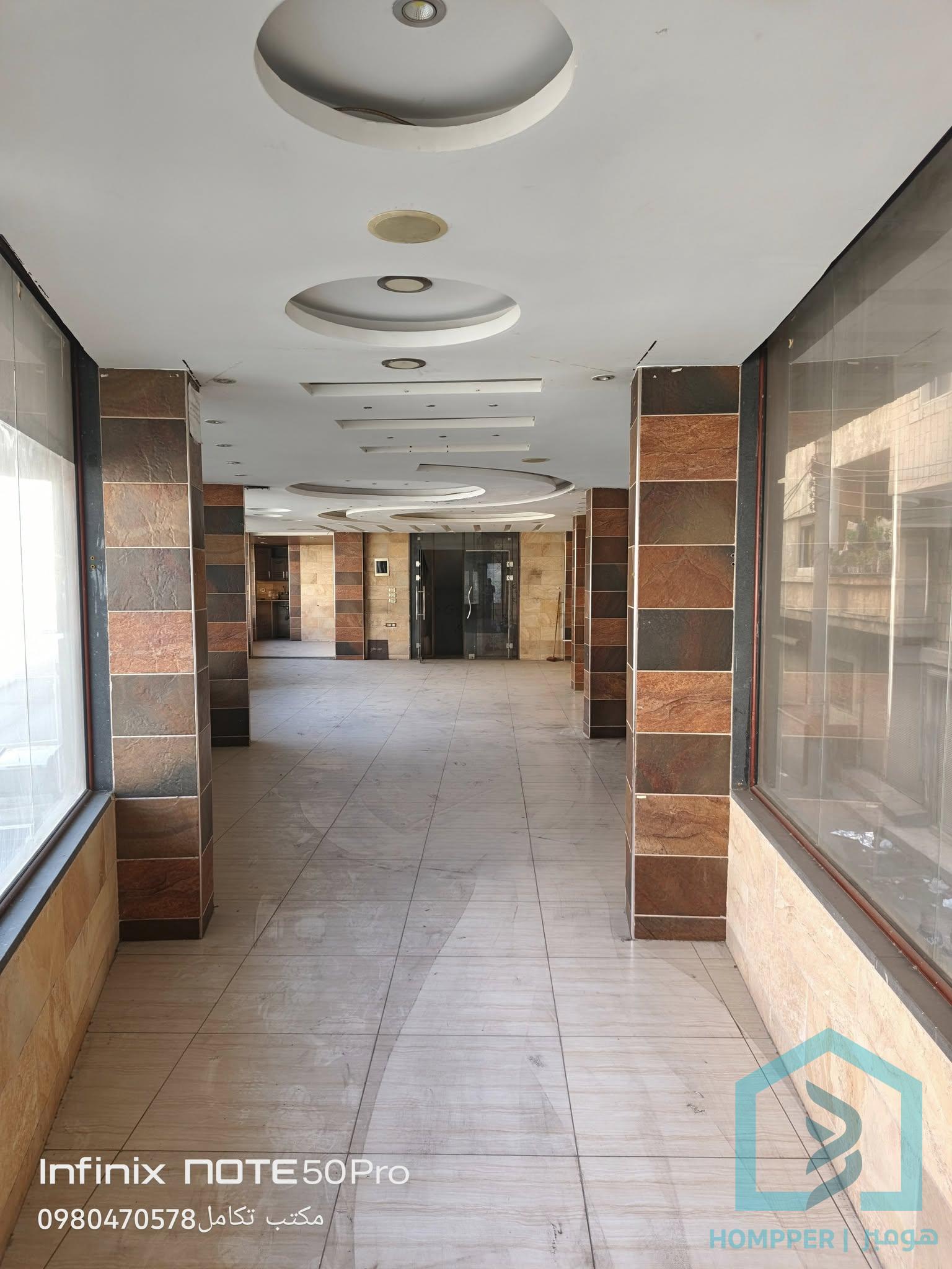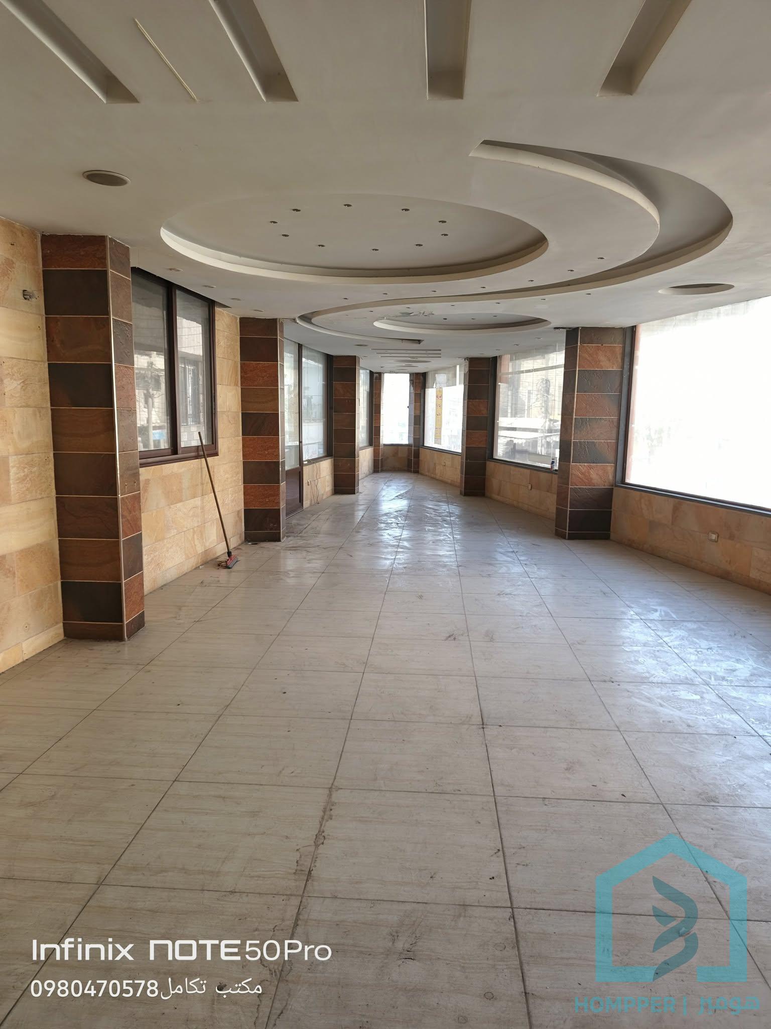 صالة على شارعين واجهة ملبسة ومدخل من البناية ومدخل مستقل الأكساء ممتاز اسقف جبسم بورد ارضيات سيراميك منافع سيراميك خزن بالمطبخ ودرج رخام الاتجاه شمالية جنوبي غربي ملكية كاتب عدل