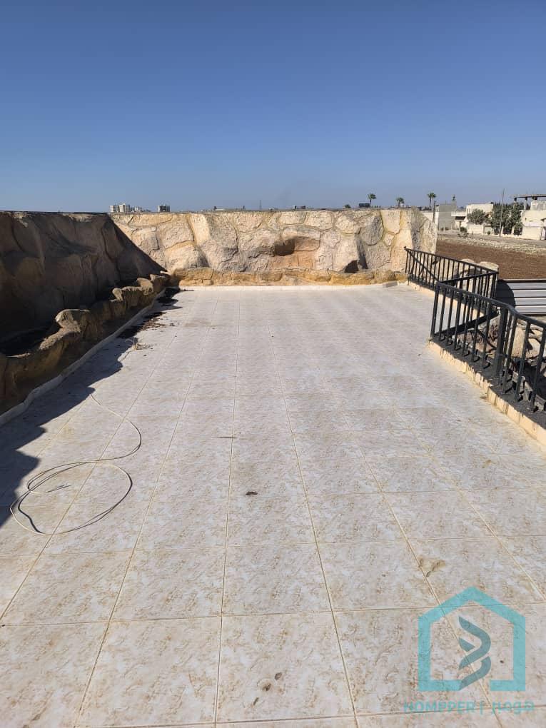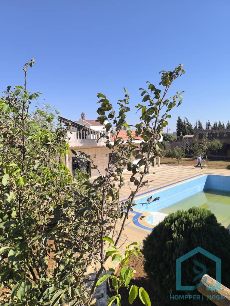 - مزرعة سوبر ديلوكس جاهزة كاملة الاوصاف - مساحة المزرعة ( 7;2 ) دنم - مساحة البناء الاساسي فيها 200 متر مربع و هو عبارة عن صالون كبير حرف L و موزع كبير ل 2 غرف نوم و 3 حمامات و مطبخ كبير مع تيراسات كبيرة. وشلالات بمساحة 160 متر - بالاضافة الى حمامات و مشالح خارجية - فيها مسبح اولمبي كبير مع فلتر - فيها ملعب كرة تنس - فيها بئر ماء لا يتوقف - توجد كهرباء طاقة شمسية كما ان الكهرباء متوفرة في المزرعة - الموقع مميز اول باباعمرو مباشرة بعد المعلب الوحدة 2كيلو - الملكية طابو اخضر