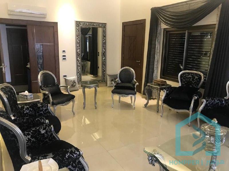 لبيع فيلا المنطقة : قرى الشام الاسد سابقا بالنزلة المقابلة لجامع النزيه المساحة : 900 م الملكية : طابو اخضر الوصف : بناء طابقين كل طابق 175 م مسبح مع كتلة خارجية مستقلة لحمامات والمغاسل باربكيو خارجي _غرفة خدمات مستقلة تحتوي على خزانات مازوت وشودير ومولدة كهربائية _بئر ماء بجاهزية تامة اكساء حديث داخلي وخارجي سوبر ديلوكس (غرانيت اسباني ، خلاطات غروهي ، رخام ايطالي ، تدفئة ارضية ، _مكيفات بكل الغرف ، ديكورات جبصين وورق جدوان) كراج مستقل مع مظلة يتسع لسيارتين حديقة مزروعة بالكامل كازون واشجار