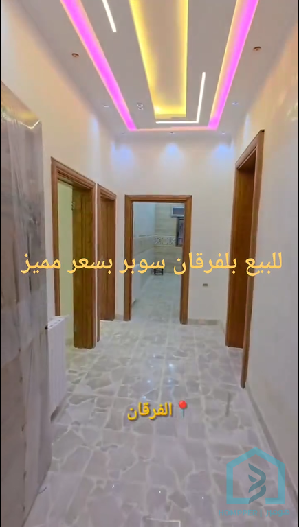 للبيع: منزل منطقة الفرقان الطابق: الثاني امامي عددالغرف: 6 غرف وموزع الأتجاهات: غربي قبلي المساحة:220 متر تقريبًا الأكساء: ممتاز سوبر ديلوكس جاهز للسكن بناء فخم مدخل فخم سطح مشترك موقع مميز مع طاقة شمسية للكهرباء وطاقة شمسية للمياه الفراغة: طابو فراغة فورية تسليم فوري