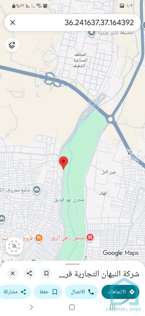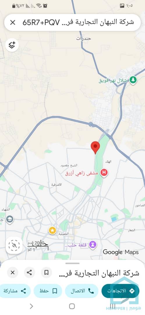 للأجار أرض طريق الشقيف على حوض النهر بعد مسبح حلب العائلي أمام مفرق قطع تبديل السيارات على الرئيسي مساحة ٦٥٠٠ متر تصلح لمعرض سيارات أو قطع تبديل أو كراج صيانة