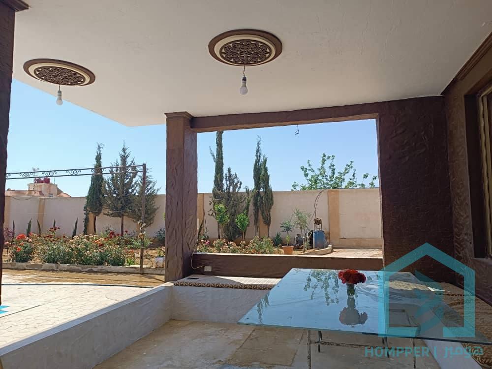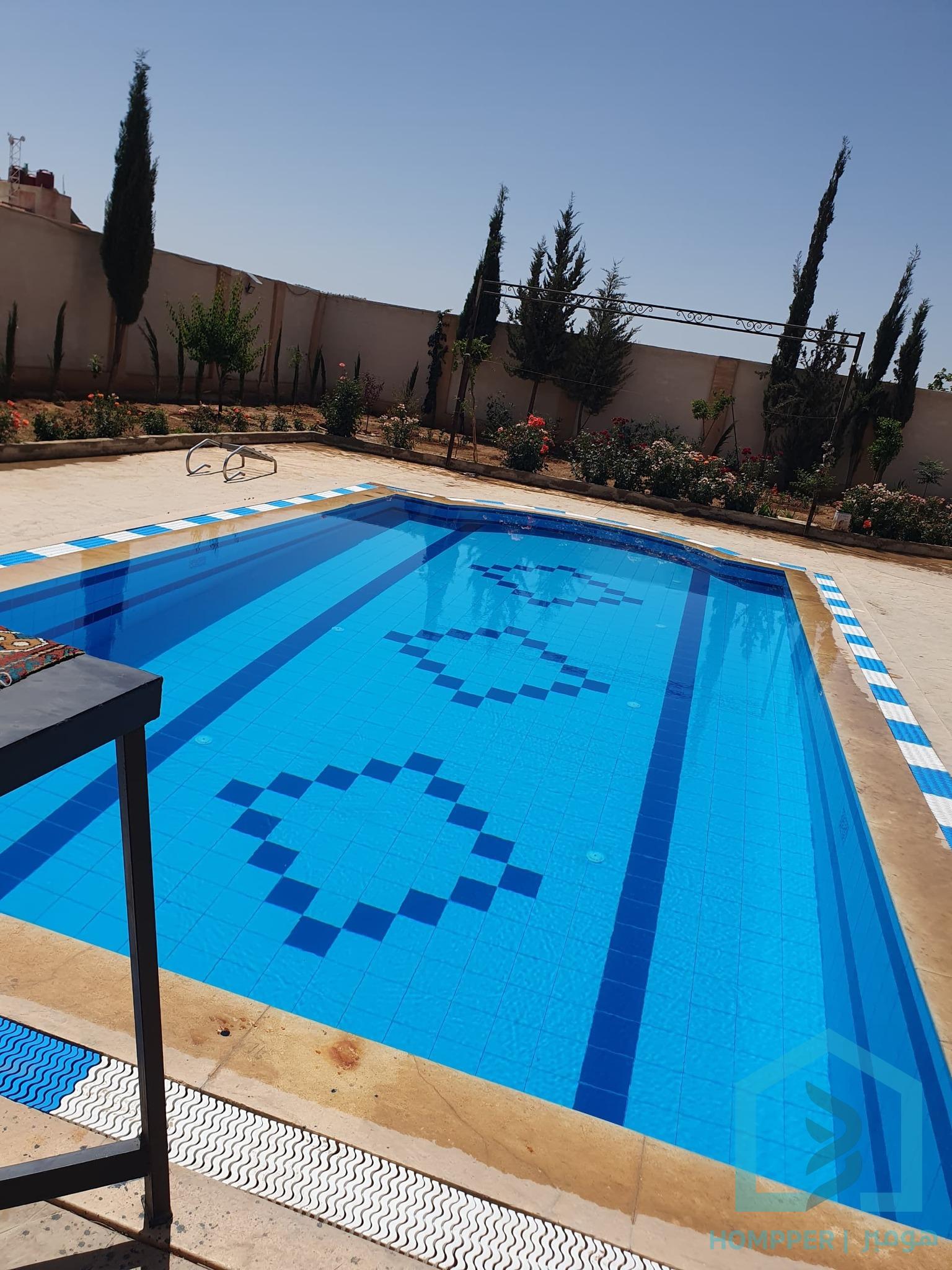 {فيلا 900متر}في ريف دمشق بين صحنايا وداريا مدخل مسجد الوهاب تبعد عن المزة ٧كم من طريق المتحلق طابقين ارضي صالون كبير ومطبخ ومنتفعات الطابق ثاني ثلاثة غرف نوم ماستر وصالون ومطبخ وتراس ٣.٥*٨ متر )(طابو أخضر)( مساحة البناء ارضي ١٦٠متر هوائي ٣٤٠ تقريباً يوجد مشالح وحمامات خلف البناء يوجد بئر ماء صالح للشرب المسبح ١٣/6 متر الفايش ١٦٠ الغميق ٢٣٠