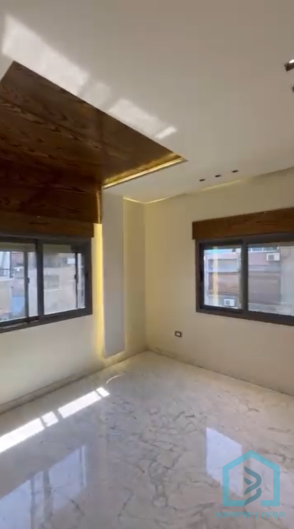 شقة للبيع الطابق : خامس مع مصعد عالطاقة المساحة الاجمالية 180م سكني90 م مع سطح 90م الاتجاهات : قبلي غربي اطلالة عالشارع الوصف : غرفتين نوم وصالون ومطبخ اميركي وحمام وسطح غرانيت اسباني + تدفئة ارضية . بللور عاكس + ابجورات كهربا الكسوة : سوبر ديلوكس حديثة الملكية طابو اخضر برئ الزمة تسليم