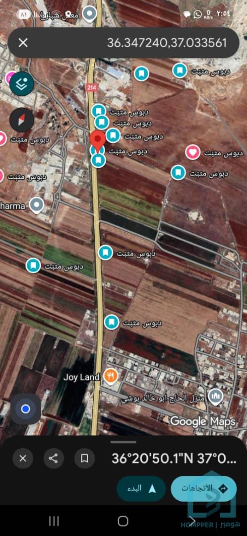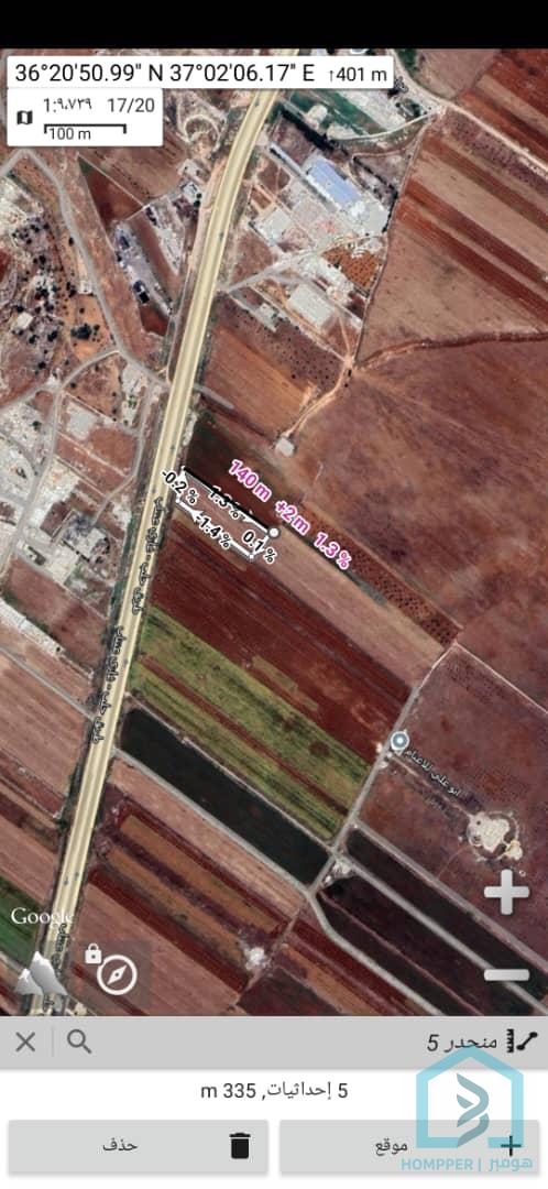 للبيع ارض شمال حلب عطريق غازي عنتاب طول 140 وجها 37 امام بيانون