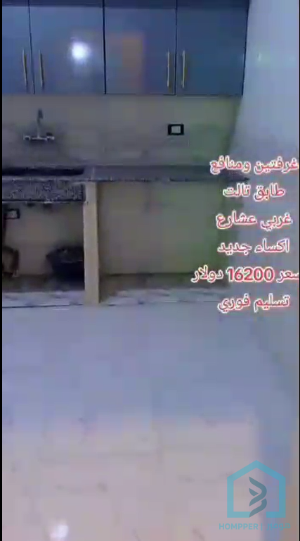 شقة للبيع طابق تالت امامي غرفتين ومنافع غربي على شارع 10متار طابو اخضر جاهزة على الفراغة بناء جديد بناية خالصة بكامل درج عم ينكسا مساحة الشقة بحدود ل60م ملاحظة : الدفع كاش كامل حق الشقة