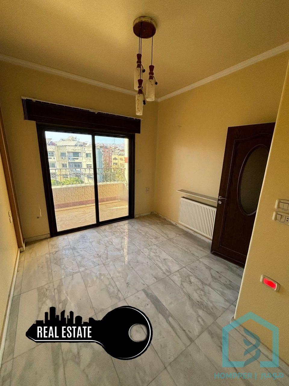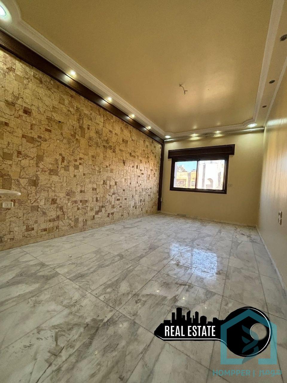 للبيع شقة في ضاحية قدسيا امتداد بوظة أمية بناء رشة و حجر طابق ثاني إطلالة مساحة 100م عبارة عن 2غرفتين نوم .. صالون .. مطبخ .. حمام2 .. موزع .. بلكون .. غرفة خادمة . إكساء ممتاز (رخام شوفاج) . سطح مشترك .