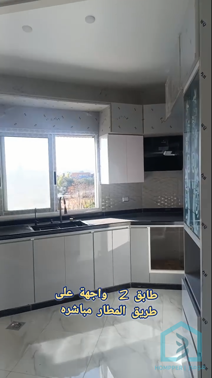 للبيع شقة طابق 2 واجهة على طريق المطار الدولي غرفتين نوم وصالون وبلكون عدد2 وحمام عدد2 مساحه ١٠٠ متر جنوبي سوبر ديلوكس واجهة مباااشره على طريق المطار الدولي