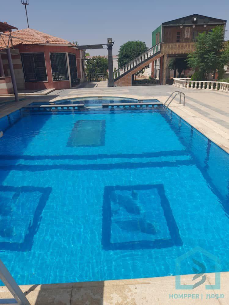 للبيع فيلا روعه خان الشيح شارع شرف المساحه ١٧٠٠ م ٣طوابق كل طابق ١٦٠ مضافه 50م كوخ معلق 30م بيت ناطور 60 م بير ماء طاقه شمسيه مسبح مفلتر طابو