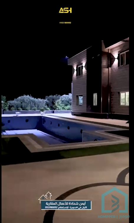 فيلا للبيع اللاذقيه برج القصب تبعد الفيلا عن مدينة اللاذقية مسافة 7 km تبعد عن اوتستراد الللاذقية -كسب مسافة 850 م المساحة الإجمالية للعقار 4500 م الفيلا مؤلفة من ثلات طوابق طابقين سكني بمساحة520 م وقبو مع باركينغ للسيارات بمساحة 260 م الفيلا جاهزة بنسبة 75 % باقي فقط دهان والبياضات والأبواب استراحة خارجية بمساحة 64 م بيت حارس مستقل بمساحة 35 م غرفة خاصة بالمولدة بمساحة 16 م حدائق بمساحة2360 م باحات وتراسات خارجية بمساحة 1265م بوابة الفيلا مساحة 36 م ارتفاع 4م تعمل على التحكم الكهربائي مجهزة الفيلا بنظام تدفئة مركزي كامل مع البياضات بئرين ماء بعمق 40 م